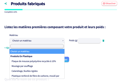 💡 Si vous avez des données sur l'utilisation des produits et leur fin de vie, vous pouvez nous les transmettre par mail à support@hellocarbo.com ou les ajouter dans la rubrique "Autres".